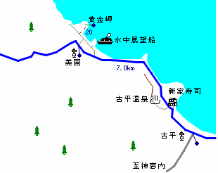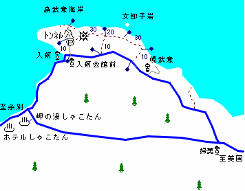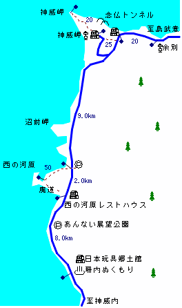 (交通:小樽駅-[バス31分]-余市駅-[バス48分]-美国-[バス30分]-入舸-[バス25分]-余別-[バス5分]-神威岬)