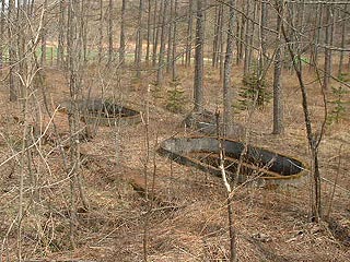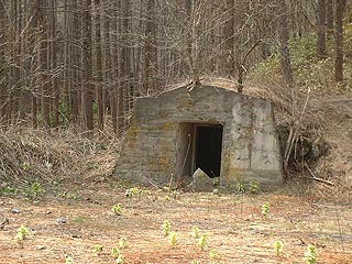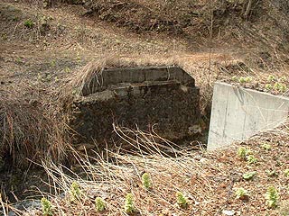 緑町二区浴場跡の浴槽がが林の中にの写真左はさらにその先の森林地帯に見つけたコンクリート構造物。写真右は雄別炭鉱尺別鉄道の廃線跡に残る橋台。