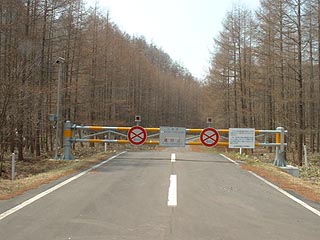 写真左は旭町購買の貯蔵庫。そしてその先は残念ながら通行止めになっていました。このさらに奥に尺別炭鉱の坑口、選炭場などの施設があります。