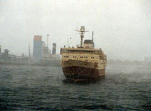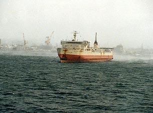 ■年末年始の連絡船 年末年始は旅客輸送は最盛期となりますが逆に貨物輸送は行われません。そのため貨物ダイヤの船は運休になります。その間、船は函館湾に停泊していました。そんな3隻の船を十和田丸から眺めることができました。 ■桧山丸か石狩丸 ■羊蹄丸 ■空知丸