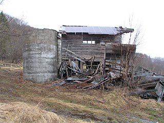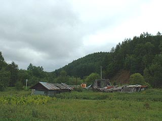 小利別市街から国道242号を2.5km程南下すると日宗川沿いに西進する道路があります。道は人口希薄地帯に不似合いな二車線道路です。そしてその道路は日宗川をさらに遡る道路と峠を越え勲祢別川の谷へと下る道路の二つに分かれる三叉路に到達します。三叉路には写真右の農家の廃屋が存在します。