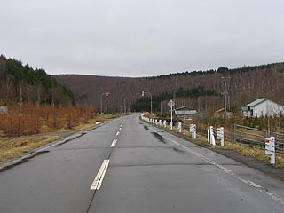 日宗川を遡る道路。途中人家が一軒だけぽつんとあります。道路の両脇は牧草地であった大半に植林がされ開拓地は再び森に還ろうとしていました。この道路は実は道道620号で先述したダートがここに繋がるはずなのですが今はとても普通車が通れるような状態ではなく今後整備される可能性もないのでしょう。