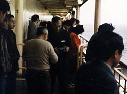 青森駅にはつかり号が到着。すぐの乗船は半分あきらめながらも青函連絡船乗船口に向かいます。駅の放送もすぐの乗船が不可能なことを伝えていました。はつかりで下車し青函連絡船をすぐに乗ろうと思っていたのは約30人くらい、なんとなく一団となって歩いていきます。駅係員がその姿を認めこの一団をすぐに乗船は無理なことを伝え、なぜか今までの列とは違う場所でちょっと待つようにと言いました。いつ乗船できるのだろうと不安になりながら少し待っている中、と青函連絡船7便17:05発羊蹄丸の出航の時間が近づきます。その時です。別の駅係員がこの一団を認め団体と勘違いをし、「早く乗船してください。」との声をかけたのです。偶然にも一団はこうして桟橋に歩みを進め羊蹄丸に乗船することになったのでした。