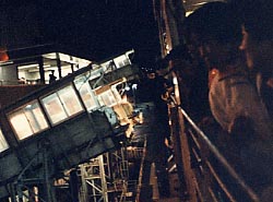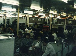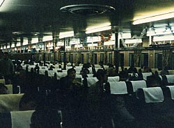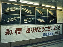 羊蹄丸は定刻どおり青森港を出航します。連絡船待合室には鈴なりの人、こんな青森港の情景は明日の同じ時間17:05に最後の時を迎えるのです。