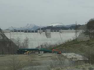 平成26年3月4日から始まったシューパロダムの試験湛水は雪解けの水の流入もあり急速に水嵩を増していきました。4月下旬に三弦橋は完全に水没し、訪れた5月3日にはただ湖面が広がるばかりでした。その後、平成26年11月13日にサーチャージ水位の301.5mに達し、その後水位は下降しています。