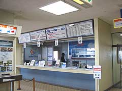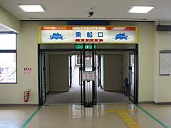 フェリーターミナルは2階建て。1階にはロビーと乗船券売り場。2階には小さい売店と食堂があります。