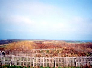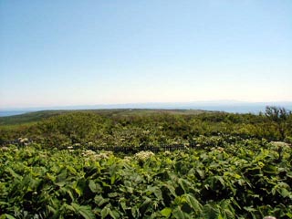 鷹の巣から焼尻島全体を見渡した風景。 とてものどかで牧歌的です。 集落は影になっているためほとんど目に入りません。 島にいるということを忘れてしまうような雰囲気。