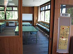 屋外、屋内には東エリアの情報を知らせる掲示板があり覗いておきましょう。また建物内には休憩スペースもあり。