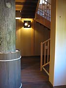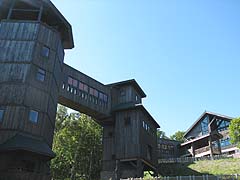 正面から見た森の交流館は普通の建物ですが、中に入っていくとツリーハウスという非常に面白い建物になっています。