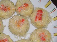 名古屋駅前の百貨店の北海道物産展にて購入。しゅうまいの上にタラバ蟹がのっていて、その下には隠し味として蟹味噌が隠れています。味は比較的平板でインパクトは弱い。
