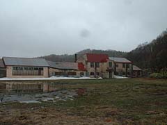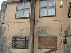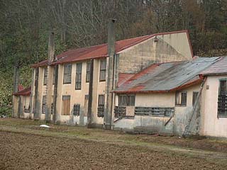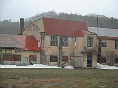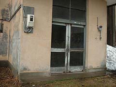 玄関と教室棟アップ。写真から判断する限り教室棟2階部分は何らかの形で使用されていました。