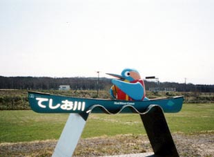 ■川岸で見つけたオブジェ ユーモラスなオブジェを天塩川の川岸で見つけてしまいました。 無粋な看板にただ天塩川と書かれているものがほとんどですがたまにはこんなものがあってもいいですね。
