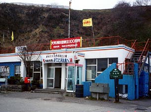 ■天売港離島ならではの小さな待合室が旅ごころを駆り立てます。 天売島を一周する観光船もフェリー、高速船にあわせて運航されます。 サイクリングロードからは断崖の下の風景は遠望することしかできませんが、観光船はそれらを間近に見ることができるのです。実際フェリー、高速船に乗っていた観光客の多くが観光船に乗り込みます。
