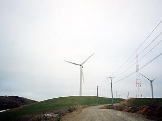 もっとじっくり風車を眺めたいなら丘の上に上っていってみましょう。入口は風車が立ち並ぶ上平牧場の北端です。上平牧場にはトーメンパワー苫前が経営する苫前グリーンヒルウィンドパークの風車が20基、ドリームアップ苫前が経営する苫前ウィンビラ発電所の風車が19基あります。その風車が丘を上ると一望できるのです。