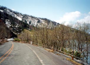 ■旧道を行く 車が通らなくなったといっても旧道は元国道ですのでとても立派です。 若干草が繁茂したり落石したりしている箇所もありますが特に危険な場所はありません。 往復してゆっくり楽しみながら1時間程度の散歩道です。