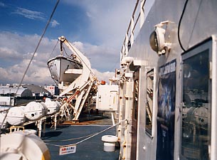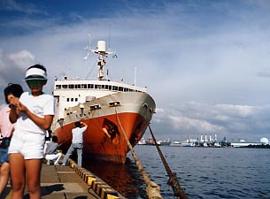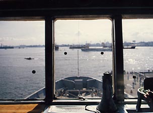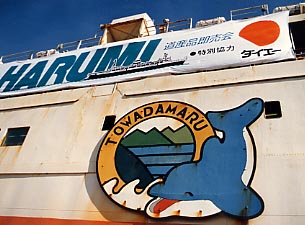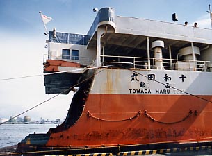 ■晴海に停泊する十和田丸 そしてそのイベントの主役として青函連絡船十和田丸がやってきたのです。十和田丸は津軽丸型青函連絡船の中でも最も新しくスタビライザーを装備していたため、 外洋に出て活躍することもあったのです。