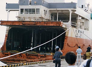 ■十和田丸の船尾 青函連絡船の内部も公開され車両甲板も外からも中からも見学することができました。