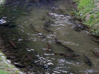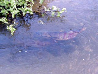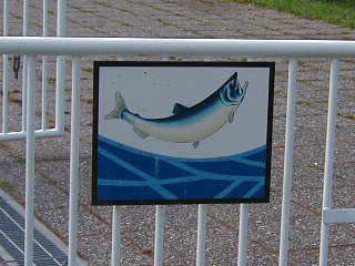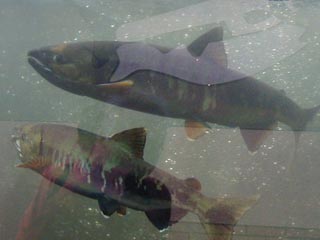 人工の水路の片側はガラス張りになっていてそこで鮭の雄姿を見ることができます。