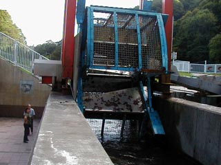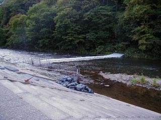 こちらは鮭を捕獲する施設でウライ式と呼ばれるもの貫気別川の本流に仕掛けられています。