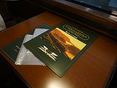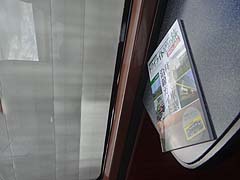 部屋に入室するとトワイライトエクスプレスの案内と車内営業の案内が置いてありました。前者には各車輌の紹介、簡単なグッズ、レストランメニューの紹介があり、後者にはグッズとレストランメニューを写真入りで紹介、ビデオ、オーディオの紹介があり、読んでいると楽しくなってきます。写真右のトワイライトエクスプレス旅のしおりは600円で販売しているもので車窓の案内、通過時間が詳細に記されていておもしろい。
