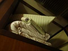 BGM装置は音量、チャンネル、読書灯、照明の切入、明暗。通路の上の部分に寝具が入っていますが荷物入れとしての利用もできます。