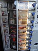 サロンカーサロンデュノールの飲料自動販売機とつまみ、菓子、シャワーセットの自動販売機。アルコールは車内販売で求めることになります。