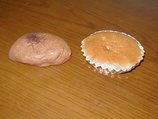 稚内市宝来町にある菓子処もりやまの商品を有楽町のどさんこプラザで見つけ購入してみました。買ったものは稚内恵北チーズ村、炭焼わっかないいもの2種類です。前者は最北の酪農地帯である恵北の名が付けられていることに魅力を感じ手に取りました。チーズ、バターがたっぷり入ったカップケーキでかなり大きめ。味は単一で変化もないためひとつ食べきるのに私は苦労しました。後者はキャッチフレーズに明るい農村と書いてあるのがおもしろい。味はわかさいもと同じような感じです。