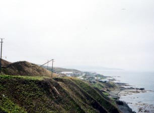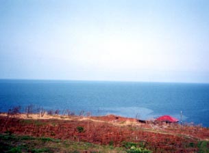 ■北の海岸線を望む島の北部、豊崎の海岸線を中島の崎の道路沿い付近から眺めた風景。 焼尻の集落は港付近に集中しますが、この豊崎、西浦にも小さな集落があります。訪れるスポット自体は乏しい。