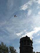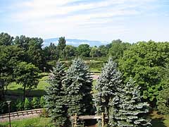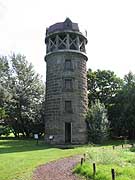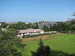 サイロ展望台は公園内中央にある芝生広場の一角にある展望台です。百合が原公園が牧場だった時代のサイロを昭和61年に開催されたさっぽろ花と緑の博覧会の開催にあたり展望台として改修したものです。螺旋階段を上ると公園を見渡すことができます。丘珠空港が近いため飛行機が空を横切ることも多い。 写真左は公園内の世界の百合広場方面の眺め。遠くに手稲山が望めるのがおもしろい。写真右は公園内のリリートレインの駅(レストラン百合が原)と温室。