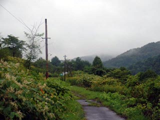 ほとんどが緑に埋もれてしまった炭住街にわずかに道路の痕跡が残ります。個人払い下げが行われたのかわずかに炭住が残っている箇所があります。