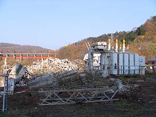 平成18年10月最後の解体工事が行われる中の発電所。この建物は現在も利用されているため残っています。