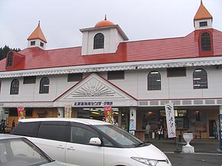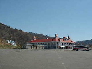 国道沿いにあるドライブインは北海道物産センター夕張店。石炭シュークリームや夕張メロンプリンなどの独自メニューも豊富ですが商品自体はもう一工夫欲しいのです。巨大な駐車場が壮観で多くの観光バスも立ち寄ります。この地にはかつて坑口からズリ山への搬送設備と炭鉱住宅が立ち並んでいました。