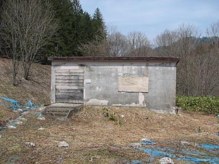 ツルカメ沢を遡ると楓簡易水道の建物に出会います。そしてさらにしばらく行くと風洞卸坑口と扇風機風洞坑口が現れます。北炭真谷地炭鉱の坑口は閉山後の昭和62年11月にすべて密閉されてしまいました。