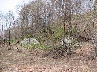 そしてその一角には材料斜坑坑口、斜坑扇風機風洞坑口、ベルト斜坑坑口の密閉が残ります。