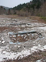 立坑側の通洞入口。総合事務所がここには広がっていたのです。建物内にあった浴槽が並んでいました。