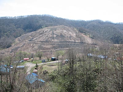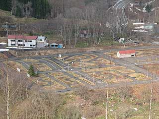 ズリ山は削られて大分低くなりましたが頂上からの風景は絶景です。自動車教習所が模型のように見えました。