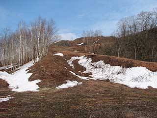 人道竪入、一区水平坑口前の広場からはズリ山を上っていくブル道が続いていました。