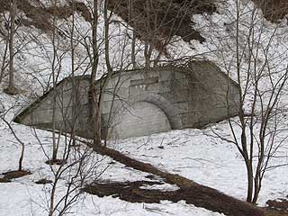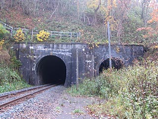 第一立坑の脇にある石勝線(旧夕張線)はかつては複線だったことを物語るトンネルが残っています。