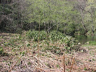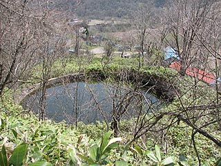 若鍋沢を遡っていくと5部の西側に小さな池がありました。この東側にはかつて小学校もありました。