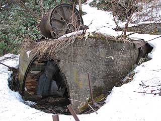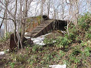 さらに山奥に入っていくと二区添卸があり、そのすぐ上には二区本卸の坑口がありました。