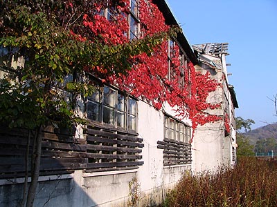 鹿の谷小学校は丘の上にありました。平成9年に閉校した校舎はその後「芸術の館」として利用されたもののその後は倉庫として使われ、平成23年に解体されました。秋には外壁を覆う蔦の葉が赤く染まり大変美しい校舎でした。