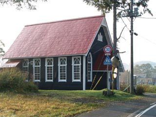 夕張教会堂は木造の三角屋根が魅力的でした。入口のアカシアがここのシンボルです。