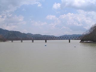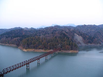 湖岸には同じ時期に補償工事で建設された第二号橋梁が確認できます。