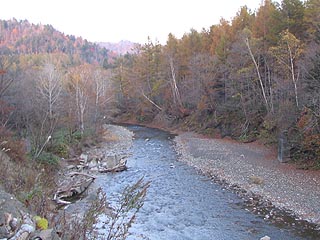 パンケモユーパロ川を渡っていた下夕張森林鉄道の廃線跡の橋脚が残っていました。またシューパロ湖に沿って下夕張森林鉄道の橋台、橋脚が多数残っていました。