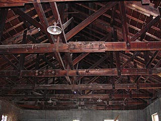 森林鉄道の機関庫も残ります。夕張いいとこウォーキングにて訪問。中は見事な木骨の屋根でした。農機具が置かれていました。