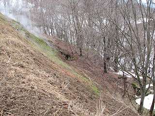 神通坑のあった一帯は今も煙が山肌に立ちこめているのが印象的でした。