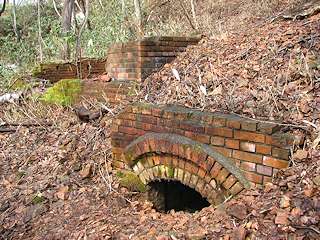 松島坑の坑口からは滝のように水が溢れ出していました。