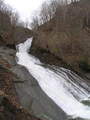 砂防ダム脇の人工の滝。