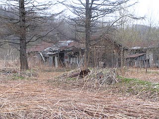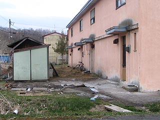 人気のない炭鉱住宅。