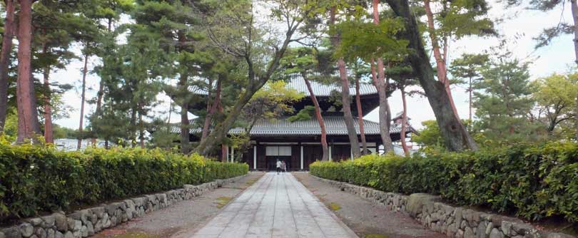 | 庫裏。何となく禅寺という雰囲気があります。この右側から承天閣美術館に入っていきます。 | 振り返ってみると法堂があります。慶長10年(1605年)に豊臣秀頼の寄進によって造られたとか。 | ||||||